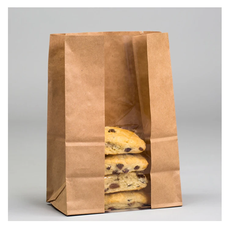 Buy Kraft Paper Baking Bags Toast Bread Bags Window AntiOil Kraft Paper Food Packaging Bags