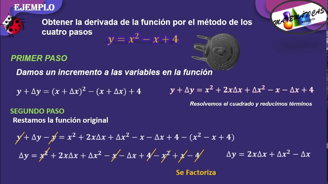 DERIVADA DE UNA FUNCIÓN POR EL MÉTODO DE LOS CUATRO PASOS, CÁLCULO DIFERENCIAL YouTube