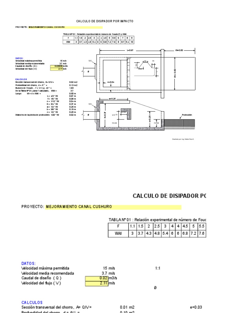 HOJA DE CALCULO DE DISIPADOR DE ENERGIA