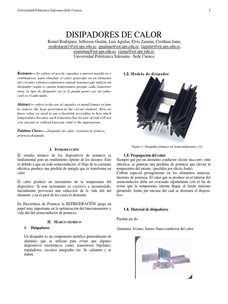 Diego Rodriguez. Cálculo de disipadores de calor. Los disipadores de calor son unos elementos complementarios que se usan para aumentar la evacuación de calor del componente al que se le coloque hacia el aire que lo rodea. Esto trae como consecuencia que se reduce la temperatura de trabajo del componente ya que la cantidad de calor que se.