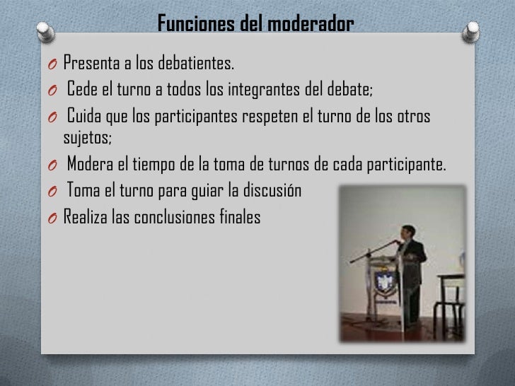 ¿cuál es la funcion del moderador en un debate? Brainly.lat