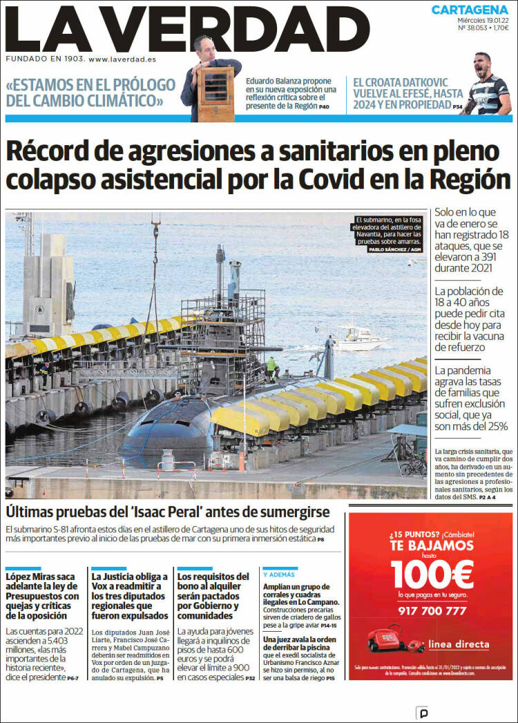 Portada del diario LA VERDAD DE CARTAGENA del día 19/01/2022 News Europa
