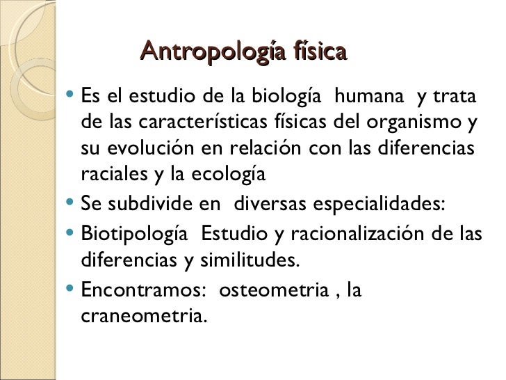 Ramas de la antropologia fisica Es un campo de la antropología en el que se utiliza el