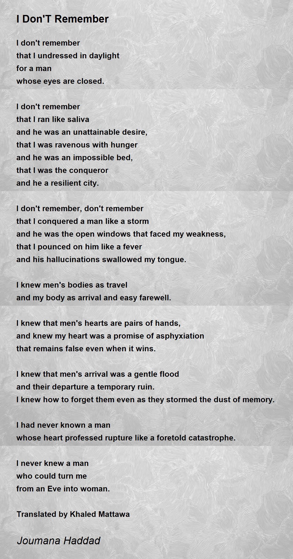 I Don'T Remember I Don'T Remember Poem by Joumana Haddad