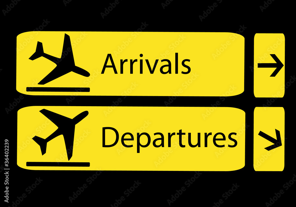 Señales de llegadas y salidas en el aeropuerto vector de Stock Adobe Stock