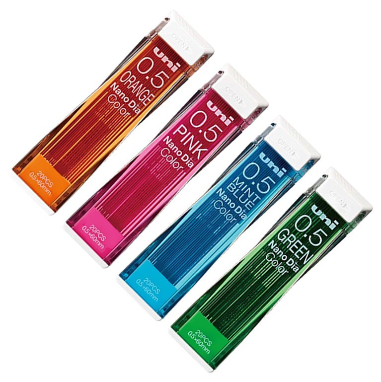 Uni Nano Dia Color Minas De Colores 0.5 Borrables Set de 20 (Disponible en 8 Colores)