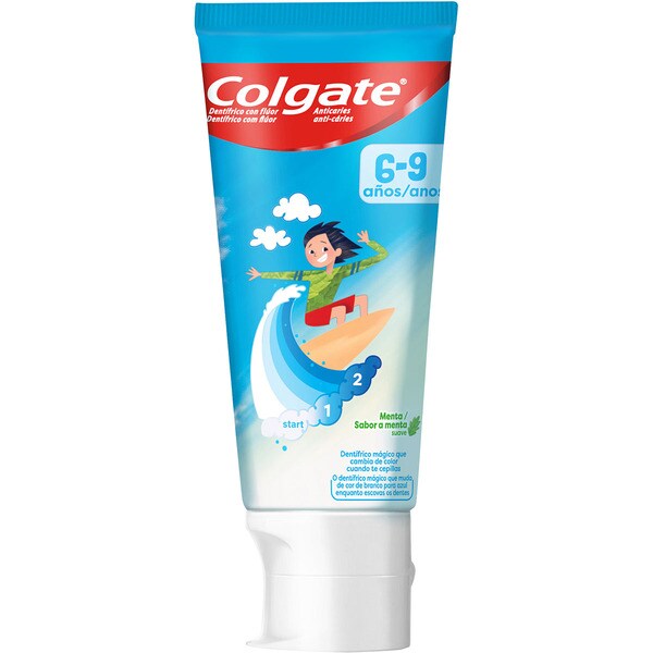 Comprar pasta de dientes anticaries con flúor sabor menta 6 a 9 años tubo 50 ml · COLGATE