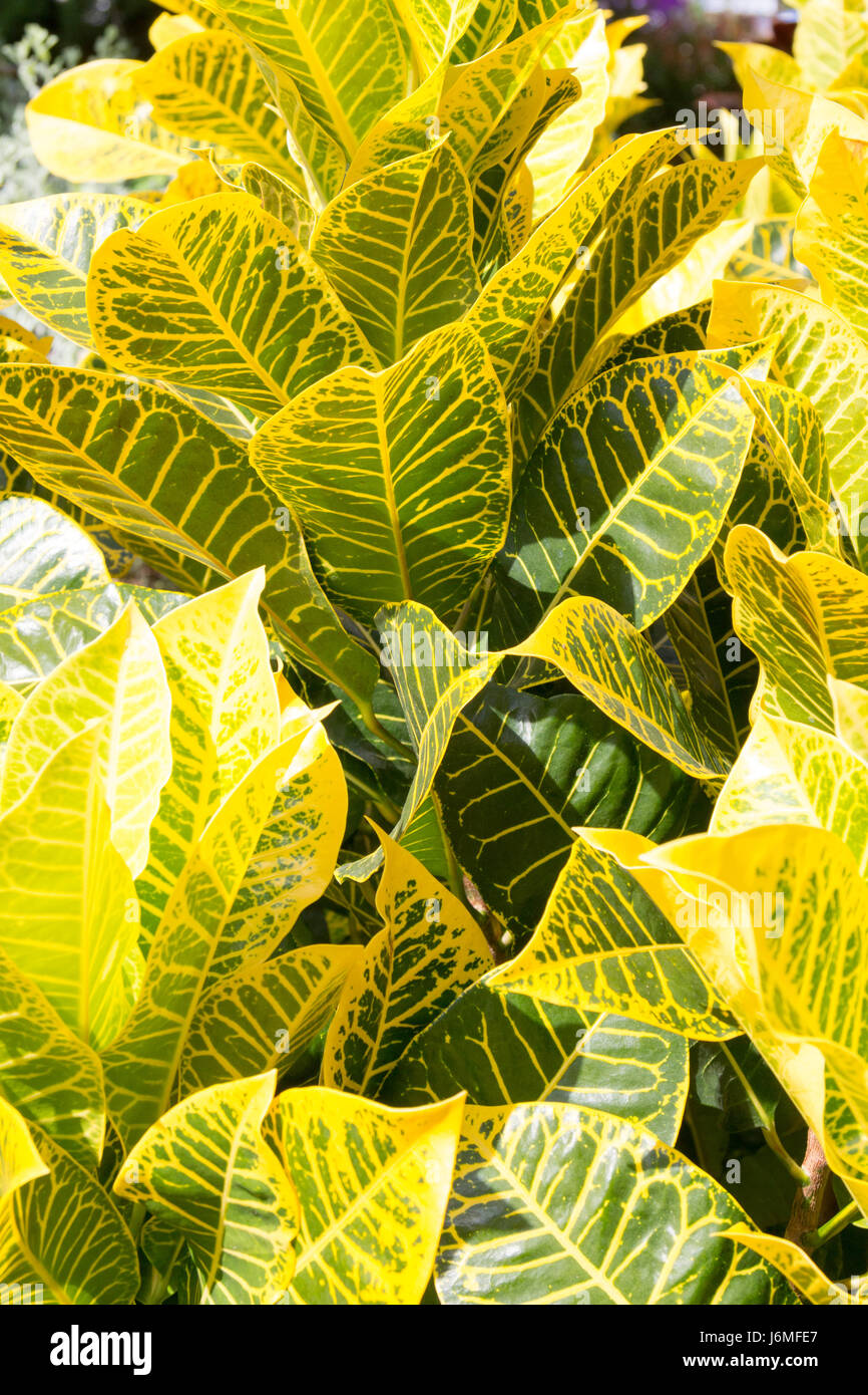 Plantas Del Croton Con Las Hojas Coloridas Plantas Tropicales Con Los Puntos Amarillos Imagen de
