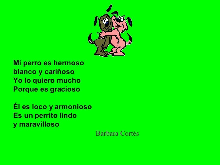 El Perrito que yo tengo, Es alegre y juguetón, Se divierte con los niños, Y se aprende la lección, De…. Leer más ». Rimas con Perros para Niños. El perro de mi vecina. Andrea Munchmeyer Lutz. Por Andrea Munchmeyer Lutz. Rimas infantiles El perro de mi vecina es un bello poema con rimas de perros para niños de todas las edades, escrito.