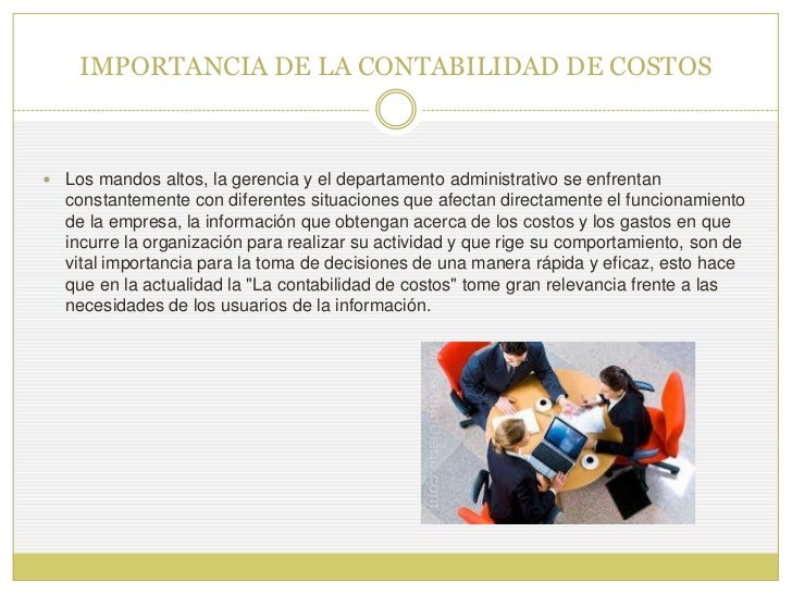 La contabilidad de costos, junto con la contabilidad financiera y administrativa, son los pilares más grandes de la economía de una empresa.. Sin embargo, la contabilidad de costos, a diferencia de las otras dos, no se enfoca en la recolección de datos pasados. Por el contrario, es la que determina qué decisiones de gestión se tomarán de acuerdo a la información disponible en el presente.