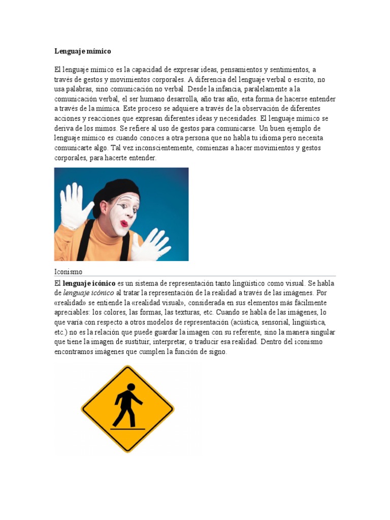 Lenguaje mímico: qué es y 6 ejemplos. El lenguaje mímico es la capacidad de expresar ideas, pensamientos y sentimientos, a través de gestos y movimientos corporales. Al contrario que con el lenguaje verbal o escrito, no se utilizan las palabras, sino comunicación no verbal. Desde pequeños, paralelamente a la comunicación verbal, el ser.