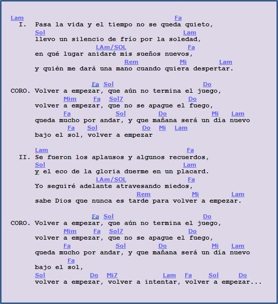 Volver A Empezar Letra y Acordes PDF