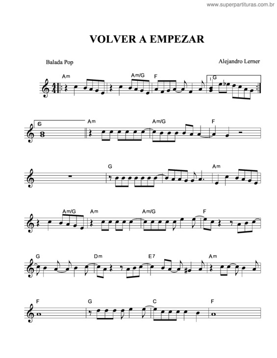Super Partituras Volver A Empezar (Alejandro Lerner), com cifra
