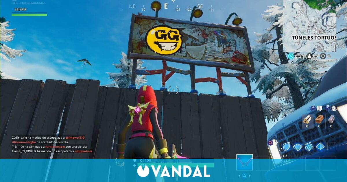 Dónde están las vallas publicitarias cubiertas de grafitis de Fortnite en detalle. Puedes encontrar dos vallas publicitarias en los siguientes lugares: Este de Túneles Tortuosos, cerca del camino entre las dos pequeñas colinas. Norte de Túneles Tortuosos, justo delante de la furgoneta de reinicio. ¡Y eso es todo!