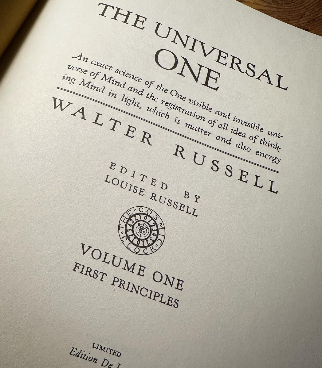 The Universal One is Walter Russell's first expression of his new Cosmology explaining the Mind-centered electric universe. 266 Page Hardcover (Originally Published in 1926) Click here for the Science Set. ISBN: 978-1-879605-08-4. Free domestic shipping on orders of $50+. Facebook.